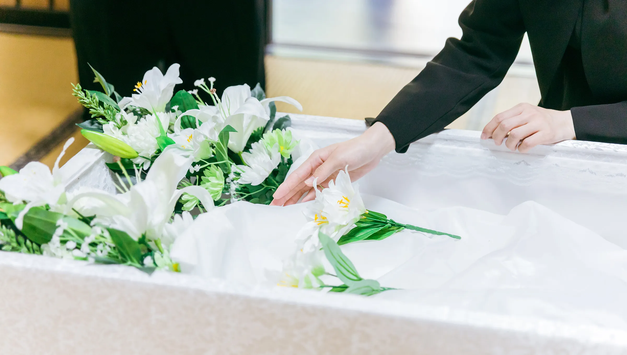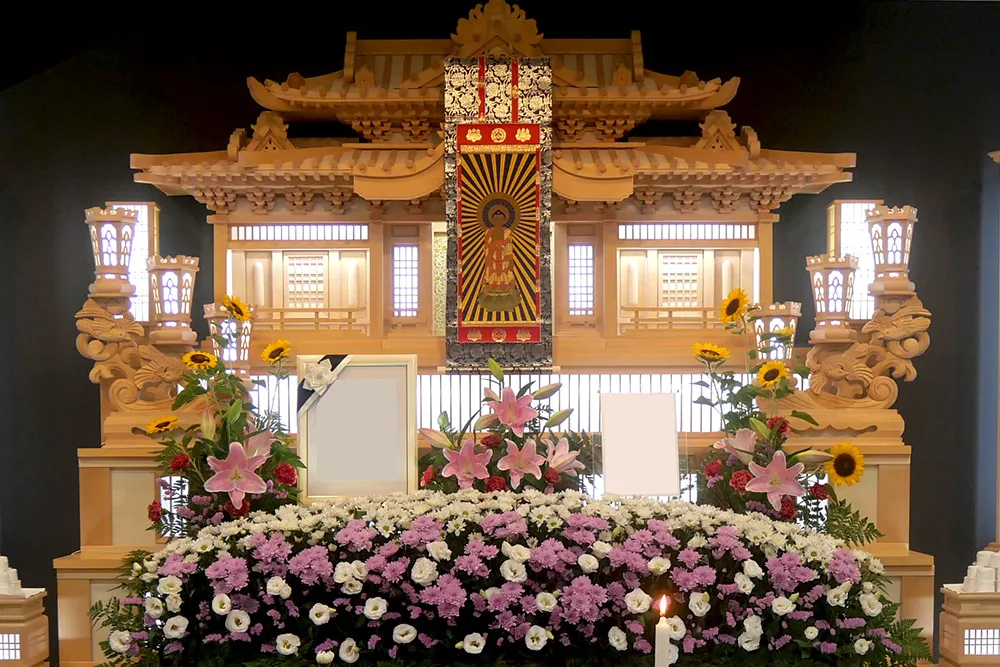 祭壇花・お棺・骨壷・霊柩車の仕様で価格が変わります